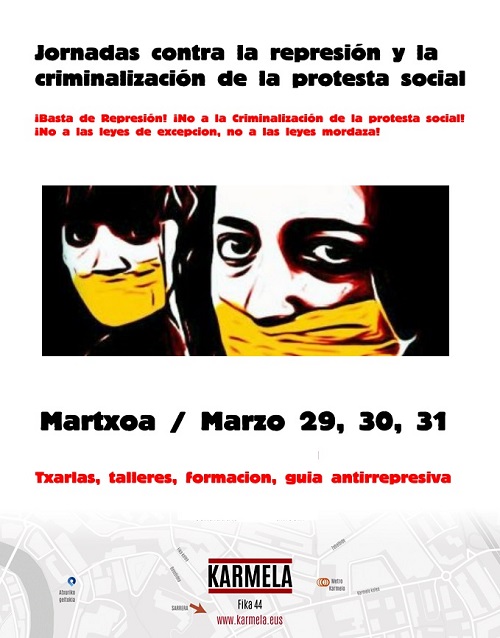 Bilbo:Martxoak 29,30 eta 31:Jornadas contra la represión y la criminalización de la protesta social