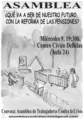 No conformes con destruir paulatinamente el estado del bienestar el “gobierno de los ricos” pretende hipotecar nuestro futuro y el de nuestros hijos con la nueva reforma de las pensiones, reforma que alargara la edad de jubilación hasta los 67 años, aumentando a veinticinco los años de cotización para poder generar una pensión, sumando a estas medidas la reducción de la base cotizadora cuyo resultado será la condena a la indigencia a miles de ciudadanos en un futuro no muy lejano.