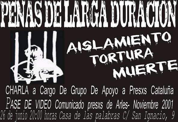 La charla será impartida por el grupo de apoyo de pres@s en Cataluña, en La Casa de las Palabras (C/ San Ignacio 9) a partir de las 20:00h (Valladolid)