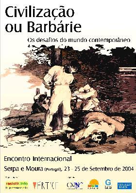 O Encontro Internacional "Civilização ou barbárie", a realizar-se no fim de Setembro nas cidades de Serpa e Moura , no sul de Portugal, destina-se a debater os grandes desafios e problemas do mundo contemporáneo. O nome escolhido para o evento - Civilizacão ou Barbárie - simboliza as ameacas que impendem sobre o Mundo no início do século XXI.