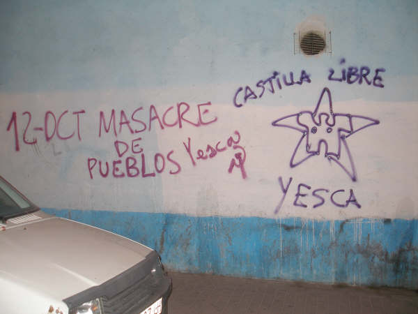 En definitiva lo que queremos expresar desde Yesca con este comunicado es una firme condena del españolismo a lo largo de la historia y en la actualidad, que es lo que representa el 12 de Octubre, y que concretamente para el pueblo castellano supone, junto con la opresión social fruto del capitalismo, nuestro mayor lastre.