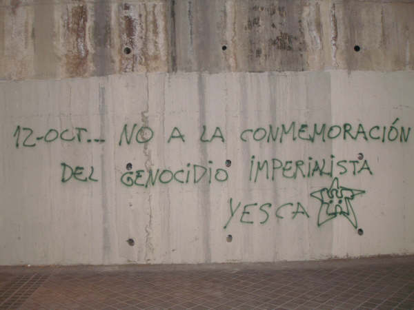 Para nuestra organización los festejos del 12 de Octubre no son más que la conmemoración del españolismo y del genocidio imperialista, tanto humano como cultural, cometido por el propio españolismo en continente americano y paralelamente en suelo de lo que a día de hoy es el Estado español.