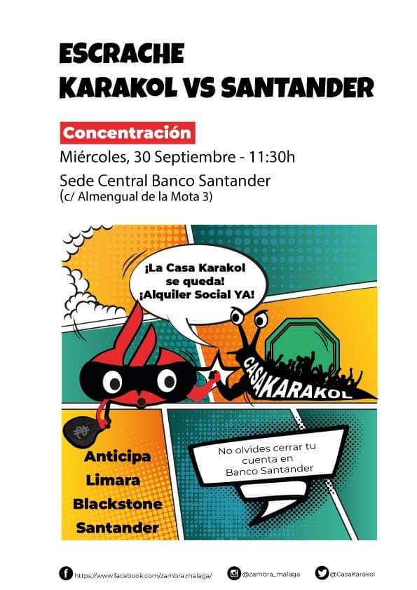 Miércoles 30 a las 11:30. Concentración en Sede Central Banco Santander, calle Armengual de la Mota 3, Málaga