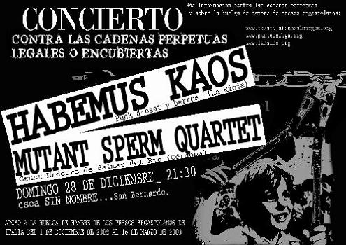 Concierto en apoyo a la huelga de hambre de los presos ergastolanos de Italia. Contra las cadenas perpetuas legales o encubiertas ( Del 1 de Diciembre 08 al 16 de Marzo 09)