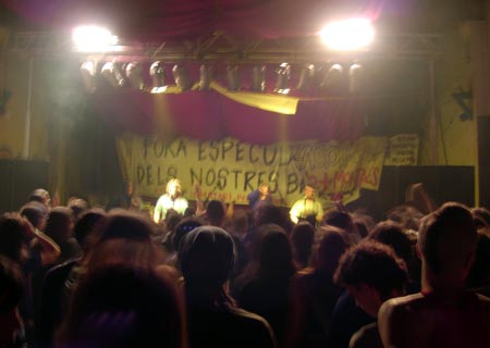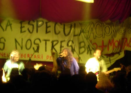 Los grupos tardaron en empezar y el público tardó en llegar... pero finalmente hacia las 11 de la noche asaltaba el escenario el rock y las melodías de Transfer, acompañado por cantos y continuas palmas de los presentes. El centro social continuaba llenándose de gente y una hora después, tras una pausa, Kostranostra (que presentó nuevo CD) arrancaba con su punk vibrante, cargado de un mensaje político sin pelos en la lengua. Los bailes no cesaron y tras una nueva pausa entró en escena el poderoso mestizaje de Ki Sap. Aforo completo en el Centro Social Okupado Pepika La Pilona (unas 400 personas) y prácticamente la totalidad de los presentes bailaban y botaban a ritmo de los bombos y las trompetas de la banda valenciana. Finalmente hacia las 3 de la madrugada la fiesta se dio por concluida. Se distribuyeron CDs, camisetas y se repartió a todos los presentes un panfleto explicando cuál es el papel de La Haine como medio de comunicación anticapitalista en Internet.