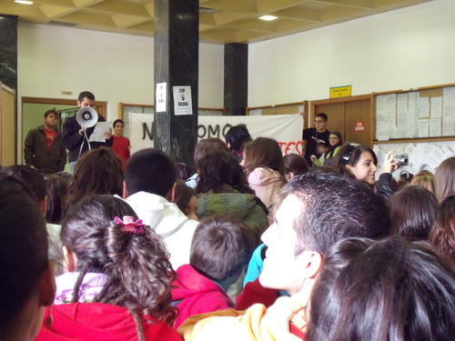 En un ambiente de compañerismo y lucha, los estudiantes se fueron concentrando en torno a las 12:00 de la tarde frente al rectorado, para, ya formado un grupo de varios centenares de alumnos, entrar en el edificio para llevar al rector nuestras proclamas, donde se leyó un manifiesto para dejar claras nuestras reivindicaciones.