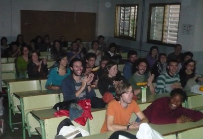 Se presenta el video de la manifestación de la Fábrica de Sueños en el aula liberada de la facultad de Trabajo Social. Esta aula lleva okupada des del martes 13 de Mayo y los estudiantes están desarrollando un encierro permanente de carácter informativo para tratar el tema del Plan Bolonia. Este escenario de revuelta ha sido idóneo para mostrar el vídeo de la manifestación (se puede descargar en Indymedia Estrecho). Miguel, el director que nos obsequió con esta grabación, presentó también un documental sobre Brad Hill, el periodista americano asesinado en Oaxaca. Miguel, amigo de Brad, edito mas de 35h. de las grabaciones de Brad, incluido el video de su propia muerte.