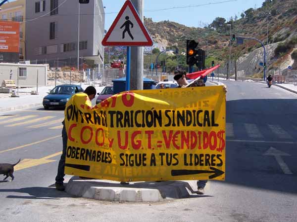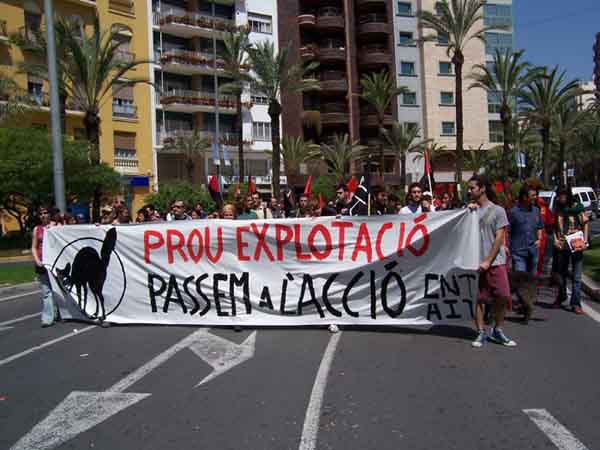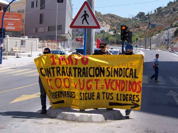 Segunda pancarta de la CNT llegado a un momento de la manifestación, esta pancarta separa los caminos en dos, por un lado hacia la derecha (siguiendo a sus líderes), siguen CC.OO, UGT, Intersindical Valenciana y las demás organizaciones del 1ºMayo Alicantino. Por la otra, la izquierda, la CNT-AIT ingobernable se separa del resto.