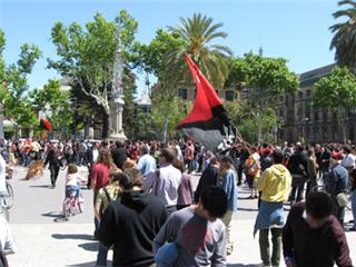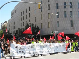 Un año más,el mítin/manifestación del 1 de mayo de la CNT/AIT en Barcelona transcurrió con normalidad y mucha motivación por parte de los/las aproximadamente 500 asistentes, coreando gritos contra la precariedad laboral,el estado,los “sindicatos mayoritarios”,etc.