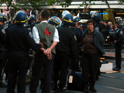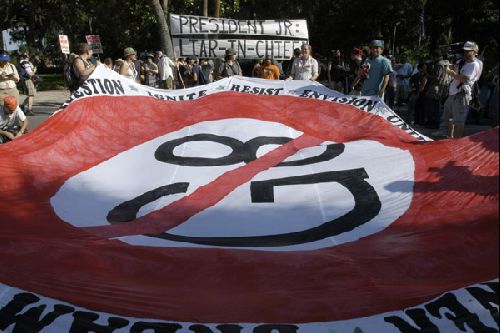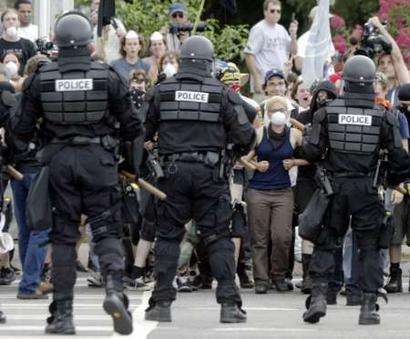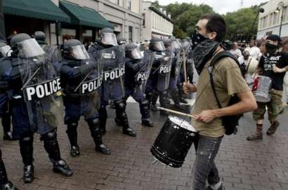Ayer la policia detuvo a 15 activistas en Brunswick (Georgia) acusandolos de de 'conducta desordenado'(lo que seria 'desordenes publicos' en el Estado Español). La policia avisó al grupo que se producirian detenciones si intentaban atravesar el cordón policial, pero les detuvieron a pesar de que no lo hicieron. 12 de los detenidos han sido acusados, ademas, de dar nombres falsos a la policia a pesar de que no dieron ningún nombre.