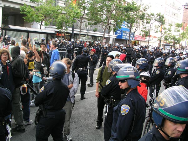 El Martes dia 8, por otra parte, alrededor de 150 personas fueron detenidas en una movilización contra el G8 despues de que la policia rodease y retuviese al bloque.