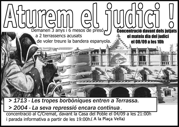 US CONVOQUEM: dimecres 8 setembre. 10:00h davant dels JUTJATS (C/ Cervantes nº 142) deTerrassa, a oín tindrà lloc el judici.