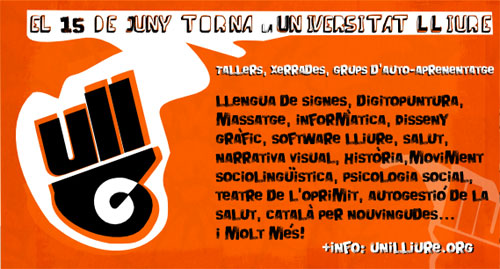 Així que si vols participar oferint tallers o vols informar-te dels que existeixen, en contacte amb nosaltres adreceu-vos a: correu@unilliure.org