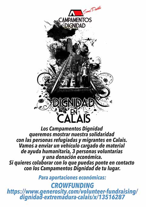 Si quieres y puedes colabora con la iniciativa solidaria de los Campamentos Dignidad Extremadura con las personas refugiadas y migrantes en Calais.