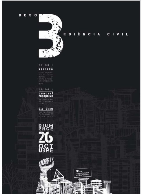 A les 17h Xerrada “Experiències de desobediència en l’acció, la repressió i la vida quotidiana”, amb algun exemple d’okupació, de desobediència a la banca i de desobediència a les penes-multa.