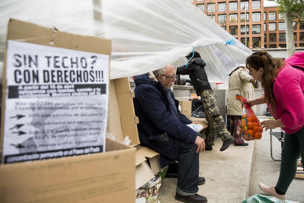 El 16 de abril de 2019, el entonces pequeño colectivo de personas sin hogar se instaló en tiendas de campaña frente al Ministerio de Sanidad, Consumo y Bienestar Social en el Paseo del Prado, entre las que se encontraban integrantes de la Asociación de personas sin techo Chupano y del movimiento “Nadie sin Hogar”. Contaban con permiso del Ayuntamiento para realizar su acampada y tenían algunas demandas abstractas, como el derecho a techo, y otras muy concretas: entre ellas, la puesta en marcha del Plan de Inclusión de la Comunidad de Madrid para las personas sin hogar 2016/2021 y la inclusión del problema del sinhogarismo en la distribución de los Presupuestos Generales del Estado.