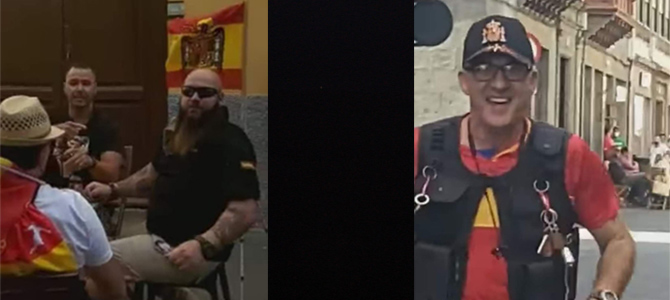 En otro vídeo subido a las redes sociales por el propio grupo de fascistas, un individuo ataviado con una camiseta con el rostro de Franco se encaró con el resto de transeúntes, retándoles a "atreverse a tocar" la bandera franquista.