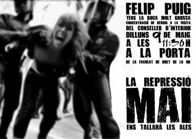 El proper dilluns 9 de maig a les 12 del migdia el conseller d'interior Felip Puig impartirà una xerrada sobre joves i seguretat a l'aula 33 de la facultat de dret de la Universitat de Barcelona.