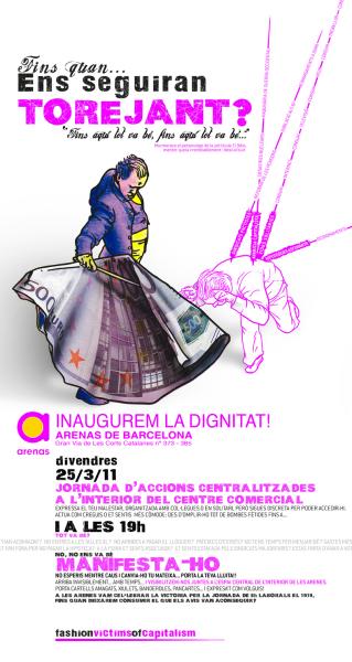 El proper 25 de març, s’inaugura un nou centre comercial a Barcelona, en l’antiga plaça de braus de les Arenes. En aquella plaça, el 1919, 20.000 obreres i obrers celebraven la victòria proletària en la vaga de la Canadenca, on s’aconseguiren les 8h de jornada laboral. Avui, s’inaugurarà –com una ofensa, com un insult- un nou centre on ens precaritzaran als qui hi treballem, i on intentaran vendre’ns mercaderies no necessitem, a canvi d’uns diners que no tenim. Ens va bé un simulacre de consum quan és la nostra vida la que es consumeix?