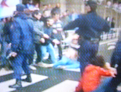A Polícia espanhola carregou violentamente por duas vezes contra a concentracom anti-espanholista. Primeiro nas redondezas do Hotel Riazor, deixando várias pessoas feridas, entre elas umha jovem militante de BRIGA que foi conduzida ao hospital com contussons num braco.
