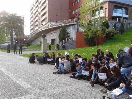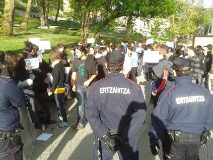 [Fotos] Escrache a la Ertzaintza en la comisaria de Deusto