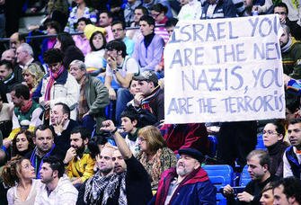 En los aledaños del Palacio de los Deportes, la Policía cortó algunos accesos, como la nueva glorieta en la que desemboca la prolongación del Paseo Marítimo de Poniente. Además, diversos grupos se reunieron con pancartas para reivindicar la paz en el conflicto bélico en la franja de Gaza, entre ellos Ecologistas en Acción, pero la policía no permitió que se acercaran al pabellón al carecer de entradas y se quedaron a la altura de la explanada grande que hace de aparcamiento. Algunos de los componentes de la protesta se quejaron a este periódico de que no se les dio facilidades para acceder a las taquillas para comprar alguna de las localidades que quedaban a la venta. Aunque lo que se dirimía en el pabellón era un simple duelo deportivo, el hecho de que la plantilla del Maccabi hiciera recientemente una visita al ejército de Israel ha sensibilizado mucho a los simpatizantes del pueblo palestino