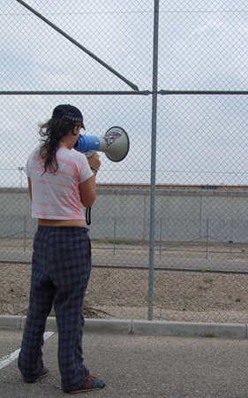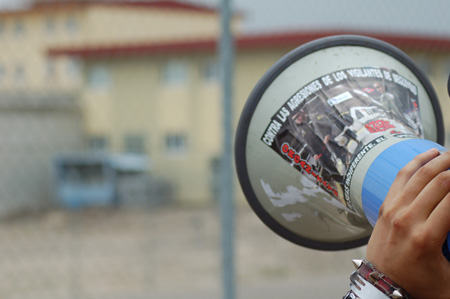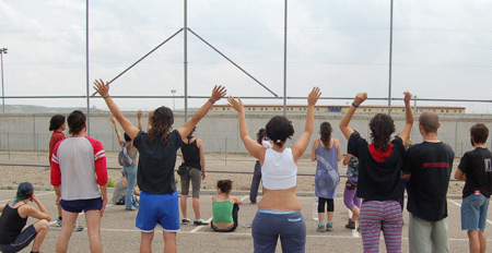 La marcha que recorrio los módulos de la cárcel de Aranjuez en solidaridad con las mujeres presas, en el marco de las jornadas de presentación de la caravana anticarcelaria Rompiendo Muros.