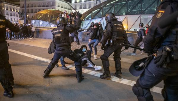 Nuria López y Alexanther son dos de los jóvenes que en la noche del jueves 18 fueron a la Puerta del Sol a “defender la libertad de expresión” y salieron con sus cuerpos amoratados por la represión policial. Protagonistas involuntarios de una de las imágenes de la noche, cuando un grupo de adolescentes con las manos levantadas, amontonados contra una pared para distanciarse del foco de la protesta, fueron rodeados por antidisturbios y golpeados en reiteradas ocasiones.