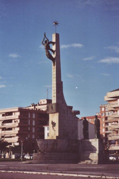 El monumento que mide 21 m. -siempre pasa lo mismo, cuanto más miserable, más grande es el monumento-, tiene un busto con la inscripción "Santoña a su hijo predilecto Capitán General de la Armada D. Luis Carrero Blanco".