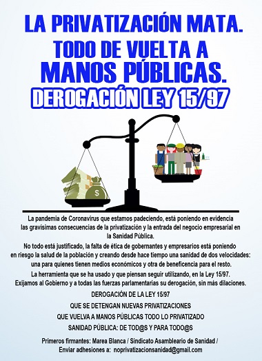 Enviar adhesiones a noprivatizacionsanidad@gmail.com