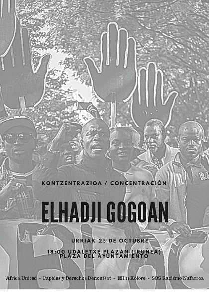 ****El próximo 25 de octubre se cumplen 3 años de la muerte en comisaría de Elhdji Ndiaye después de una detención violenta. Desde Africa United, EH11 Kolore, Papeles y Derechos Denontzat y SOS Racismo Nafarroa os invitamos a participar en esta concentración.
