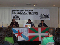 A esquerda abertzale estivo representada, no acto político convocado por NóS-Unidade Popular, através da advogada e dirigente Jone Goirizelaia, que apresentou na Galiza de maneira directa e sem os habituais "intérpretes" oficiais do conflito basco, as características do proceso proposto polo Movimento de Libertacom Nacional Basco para a superacom do confronto violento em termos democráticos.