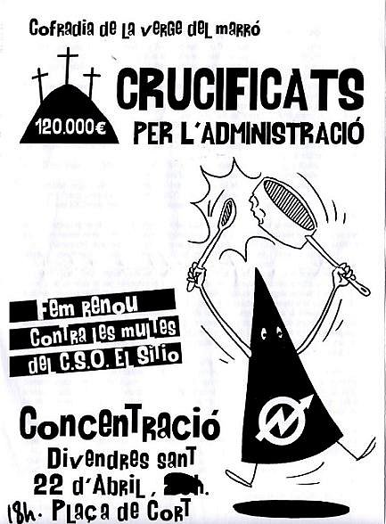 La Cofradia Nuestra Señora del Marrón ha convocat per divendres 22 una sorollosa protesta-concentració a Cort a les 18 hores en solidaritat amb els encausats per la sanció interposada des de l’Administració a dos activistes del CSO El Sitio.
