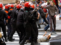 En Bilbo, donde la movilización se convocó frente a la sede del EBB del PNV, la Policía amenazó a las cerca de 200 personas con sus porras para que disolvieran la concentración. Al no conseguirlo, la Ertzaintza arremetió con dureza, y según testigos, dos jóvenes fueron objeto de «una severa paliza».
