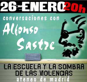Los encuentros para repensar la educación "¿Educar para la vida o a amaestrar para el mercado?" inician su sexta edición el próximo 27 de enero bajo el lema "convivir en la cultura global". En las presentaciones de las dos ediciones anteriores el Ateneo de Madrid se quedó pequeño y decenas de personas siguieron el acto desde la puerta y los pasillos. En 2005 hubo teatro contra la tortura (Pedro y el Capitán, de Mario Benedetti) y en 2006 teatro anti-imperialista (El coloquio, de Belén Gopegui). El teatro de Mario Benedetti y Belén Gopegui convocó a más de 400 personas a denunciar la práctica de la tortura y el imperialismo aquí y ahora. (Ver crónica y fotos de La Haine)