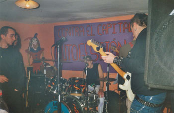 AK. Pues hay muchísimos, aunque cada uno va a su rollo. Se puede decir que todos los grupos queremos "salir de la mierda" y en ese sentido somos muy individuales a la hora de movernos. Con muchos tienes buen rollo, pero con otros simplemente no hay trato. En cuanto a la implicación de los grupos músicales en la lucha, pues pueden tocar a favor de un colectivo para tal causa y colaborar en las luchas locales, pero no se organizan entre ellos.
