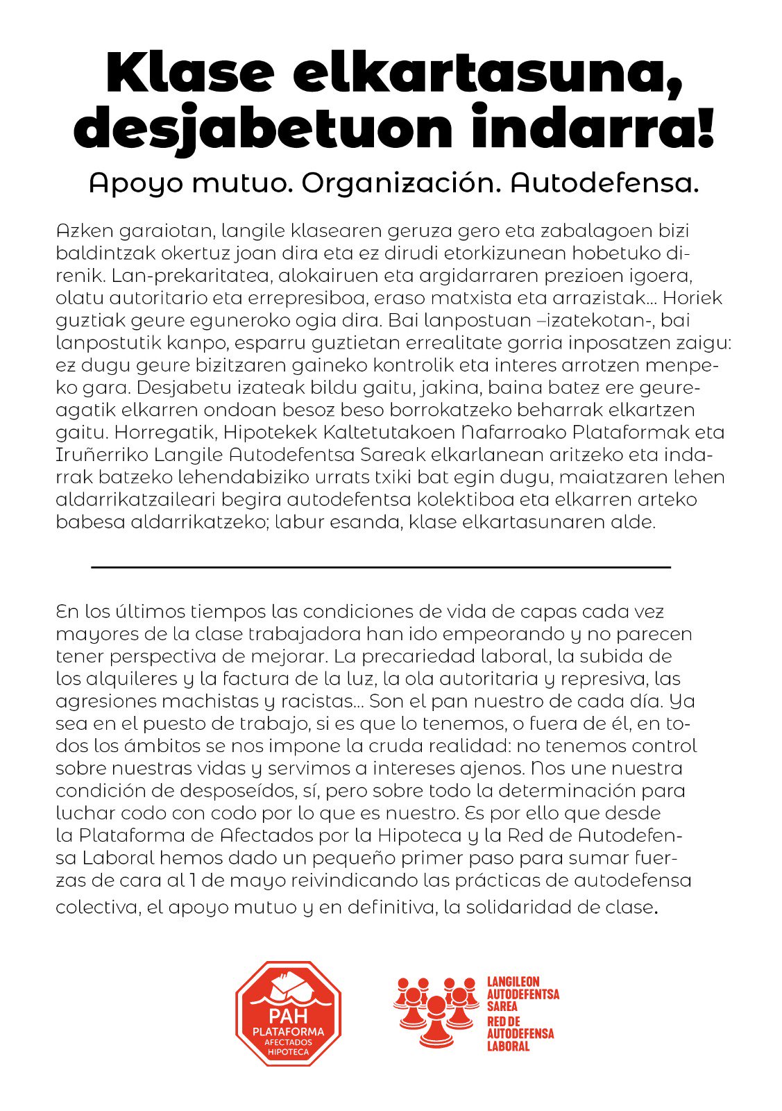 M1: Klase elkartasuna, desjabetuon indarra! Apoyo mutuo. Organización. Autodefensa @PAHHUTNavarra