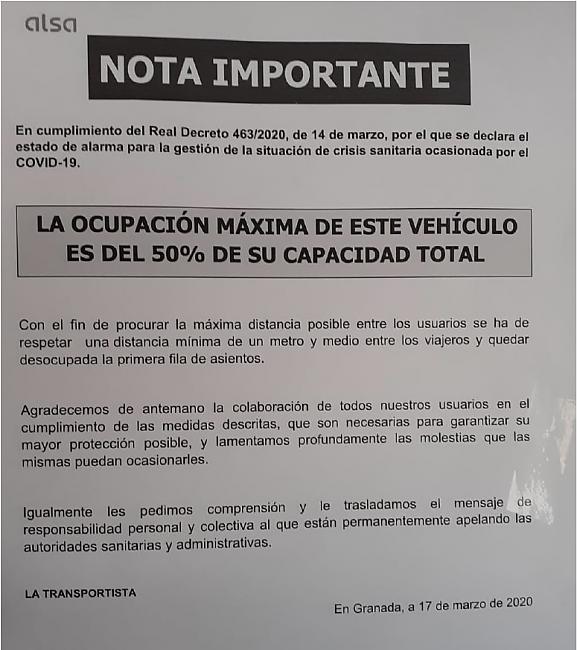 Hay empresas como Alsa y Rios que autorizan un nivel de ocupación en los vehículos del 50%, cuando se están haciendo recomendaciones desde hace días para que ese nivel de ocupación sea de 1/3 de las plazas.