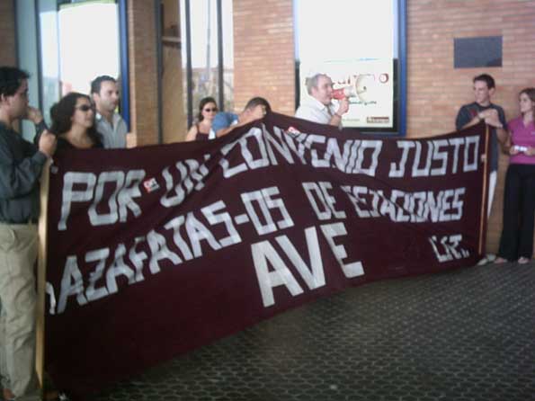 A partir de las 15:30 horas los trabajadores, todos ellos afiliados al sindicato CNT, se concentraron en el interior de la estación con una pancarta en la que rezaba "Por un convenio justo, azafatos de estaciones AVE" y estuvieron repartiendo información a los usuarios de la estación.