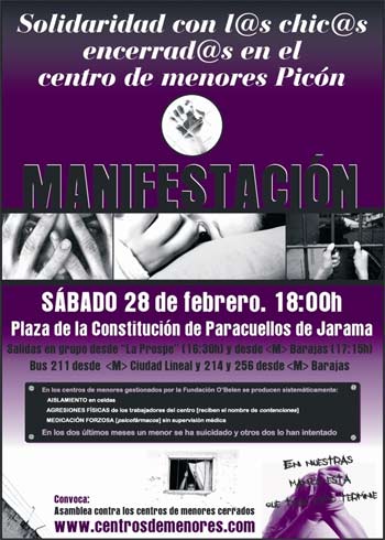 Manifestación: Solidaridad con los chicxs encerrados en el centro de menores de Picón (Madrid)