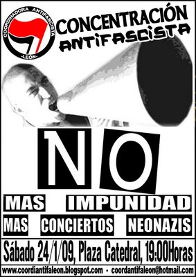 Llamamos a toda la ciudadanía leonesa a manifestarse en contra de estos actos bajo el lema: ¡Basta ya de impunidad.No a los conciertos neonazis!