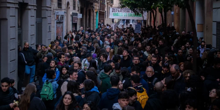 La presión vecinal ha logrado frenar, al menos de forma temporal, el desahucio previsto en el conocido Bloc Sant Agustí, situado en el barrio de Gràcia, en Barcelona. Más de 500 personas se han concentrado este miércoles por la mañana a las puertas del edificio para impedir el lanzamiento, en una movilización que pone de relieve la creciente tensión en torno al acceso a la vivienda en la ciudad.