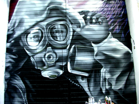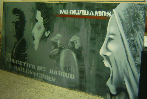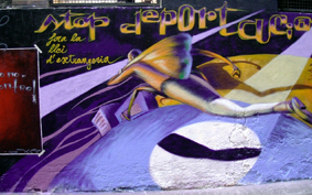 Murales en la caseta del colectivo 21 Railes Verdes en las fiestas de Barajas 2003: