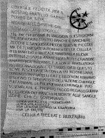 Ja són en camí tres paquets bomba enviats a bancs i banquers, sangoneres i paràsits. Amb aquestes accions, petites però convençudes, des de la cèl·lula italiana Free Eat & Billy ens sumem a la nova internacional anarquista, la Federació Internacional Anarquista i el Front Revolucionari Internacional. El nostre nom mostra solidaritat amb la FAI indonèsia, amb els nostres germans Eat i Billy. No necessitem especialistes en l’acció, totes podem armar-nos, totes podem construir el nostre paquet regal. Guerra a l’Europa dels bancs. Mort a les sangoneres que ens governen.
