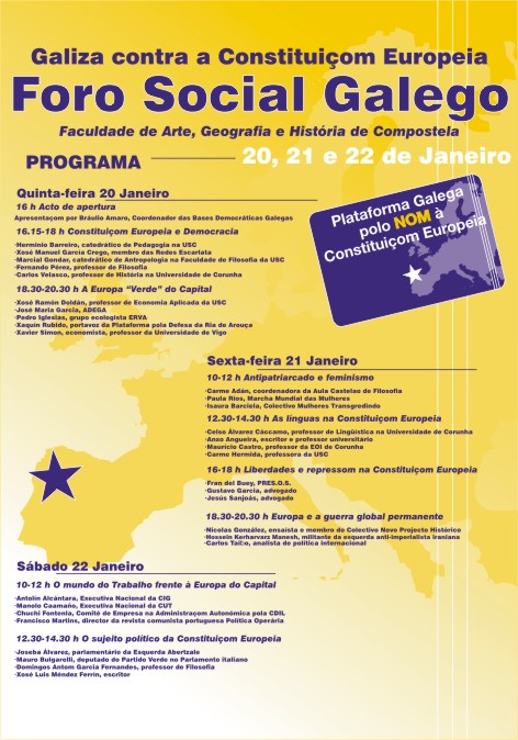 Plataforma Galega polo Nom à Constituicom Europeia organiza ambicioso Foro Social Galego