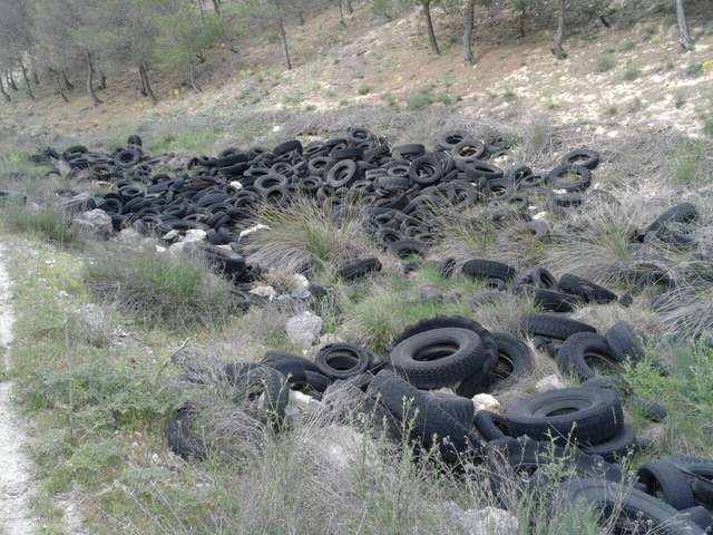 Tras esta entradilla que pretende hacer hincapié en el reciente desastre para hacer memoria ante la facilidad pasmosa de la amnesia colectiva, lo que en verdad ocupa este artículo, es dar a conocer los otros cementerios de neumáticos improvisados, clandestinos o en “B” de la zona. Siendo conscientes de la problemática de almacenamiento de éstos y que encima desde que en 2006 entrara en vigor el Real Decreto 1619/2005, que prohíbe los almacenajes de malas maneras y como reza el decreto: “A los efectos de fomentar una mayor y mejor concienciación ciudadana…” nos soplen al consumidor la tasa del ecovalor, que no es barata por cierto, para el reciclaje, luego nos encontremos por doquier los neumáticos tirados. Como dice el dicho: dinero llama al dinero. Así que las filantrópicas empresas nos cobran más para luego ve tú a saber dónde amanecen los residuos. Como ya sabemos todos es typical spanish en lo tocante al reciclaje.