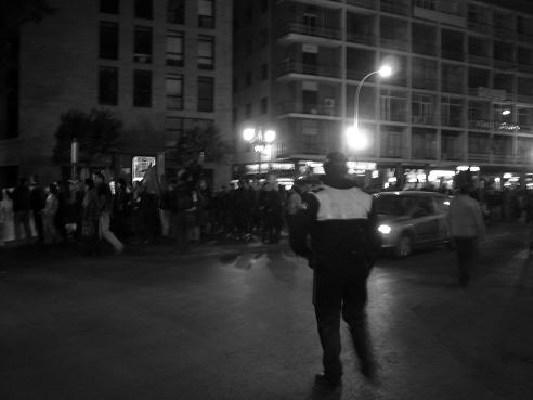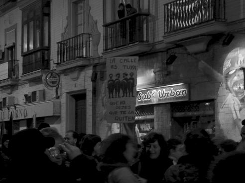 En la tarde de ayer, destacaba la presencia de una furgoneta con un sound system, que iba amenizando la manifestación con música y un micrófono informativo. Otro aspecto significativo fue la presencia de grupos políticios y sindicales que se hicieron notar en la dinamización de la movilización. La marcha, acompañada por gritos como "Paredes mudas, como en la dictadura", se dirigió hasta la Campana, para luego llegar a la plaza de San Pedro. Tras recorrer el centro de la ciudad y plazas tan populares como la de la Alfalfa o la Pescadería, lla concentración desembocó en Plaza Nueva, para terminar delante del Ayunatmiento. Una vez allí, se leyó Manifiesto escrito por la Asamblea por el libre uso de los espacios públicos y fiinalizó el acto con música y buen ambiente.