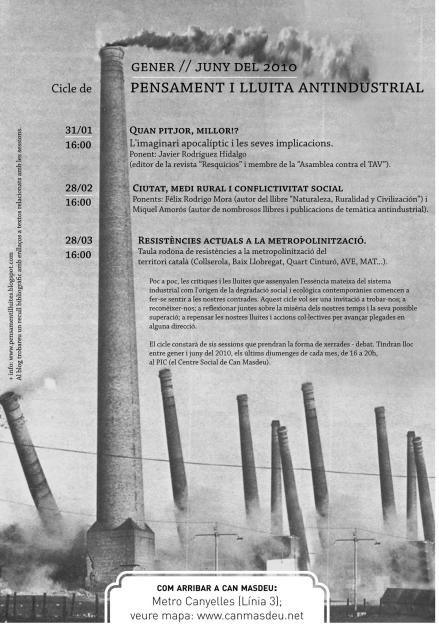 Aquesta activitat s'emmarca en el Cicle de pensament i lluita antindustrial que està tenint lloc a Can Masdeu entre gener i juny de 2010 a raó d'una sessió per més, coincidint amb els últims diumenges de cada mes. Per a és informació sobre el cicle visiteu el blog www.pensamentilluites.blogspot.com/