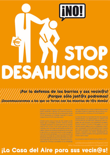 No es solo por los vecinos/as de la Casa del Aire, es por los cientos de familias desahuciadas este año en Granada, es por reivindicar un derecho real a la vivienda, por denunciar el entramado institucional que permite que los bancos y las inmobiliarias echen a gente a la calle para seguir enriqueciéndose. Los hipotecados que no pueden pagar y los vecinos mayores de renta antigua, son un estorbo para el negocio del ladrillo.