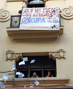 Tras más de 15 horas de cerco policial y de intentar negociar con la Delegación de Gobierno, los antidisturbios se retiran y los activistas celebran la conquista del espacio. Video y música producidos por La Plataforma.